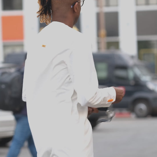 La tenue Hamet incarne une élégance contemporaine, pensée pour l’homme qui aime le raffinement discret mais assuré. Confectionnée dans un tissu blanc crème, elle offre une allure fraîche, lumineuse et sophistiquée, parfaite pour les occasions formelles comme les sorties chics du quotidien.