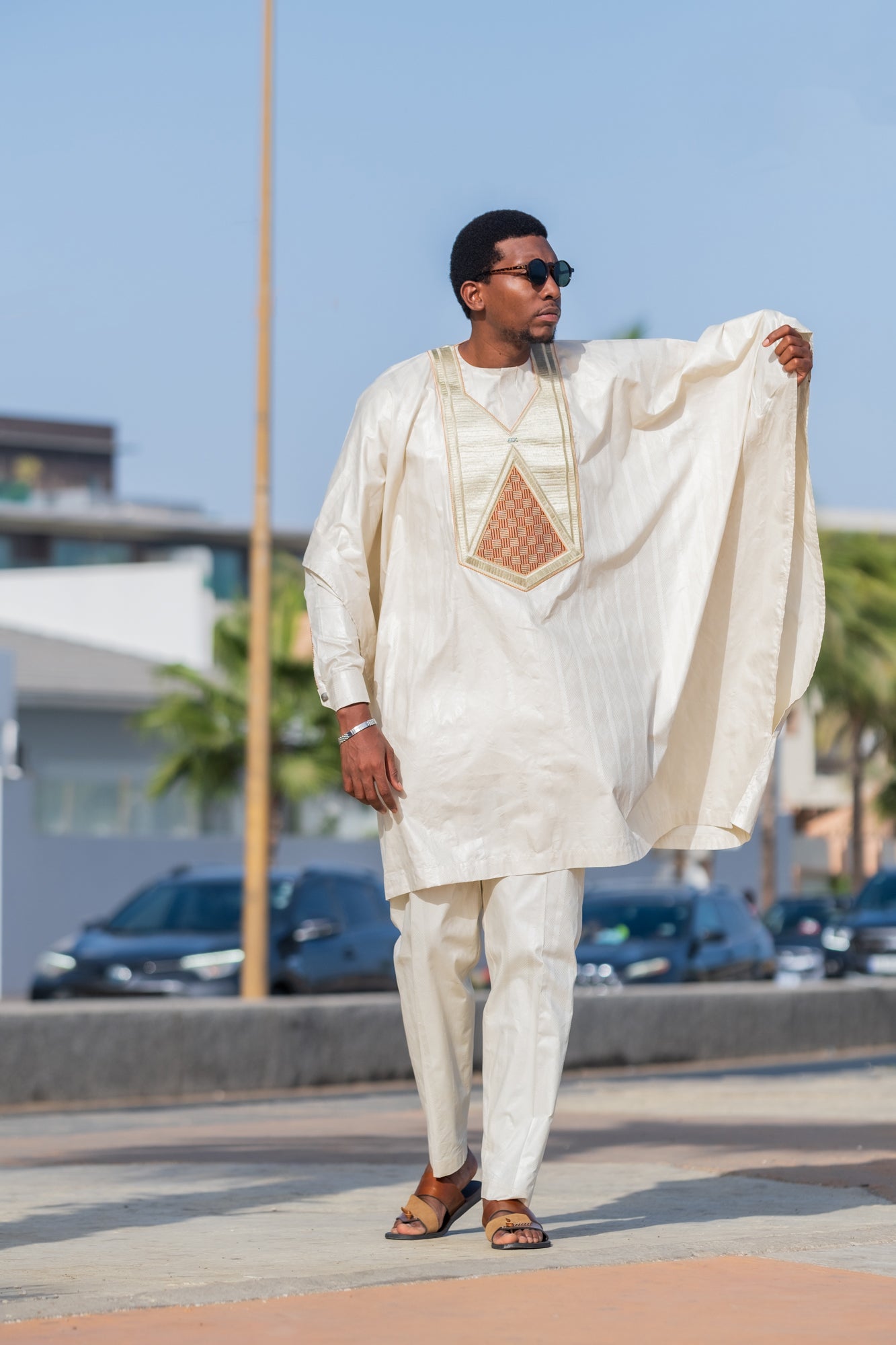 - Discret mais impeccablement taillé, il complète la tenue avec sobriété, permettant au boubou et à la broderie de conserver toute leur majesté.